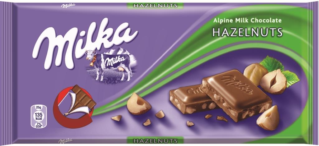 MILKA Czekolada mleczna z kawałkami orzechów laskowych 100g (pakowane 22 szt.)