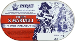 PIRAT Filety z makreli w sosie pomidorowym 170g (pakowane 20 szt.)